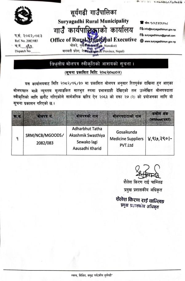 ईमेलः–suryagadhimun@gmail.com, info@suryagadhimun.gov.np