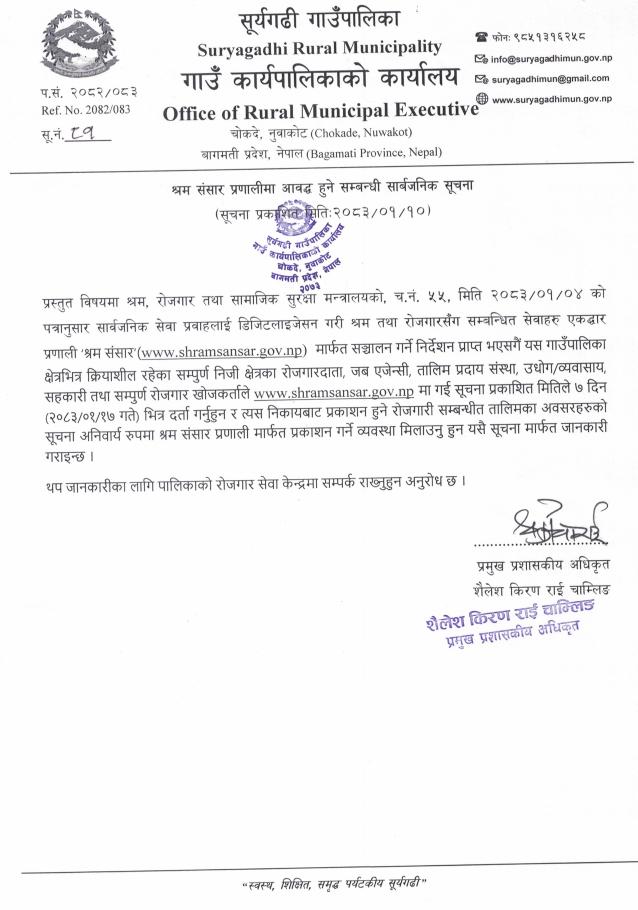 श्रम संसार प्रणालीमा आवद्ध हुने सम्बन्धी सार्वजनिक सूचना!!!