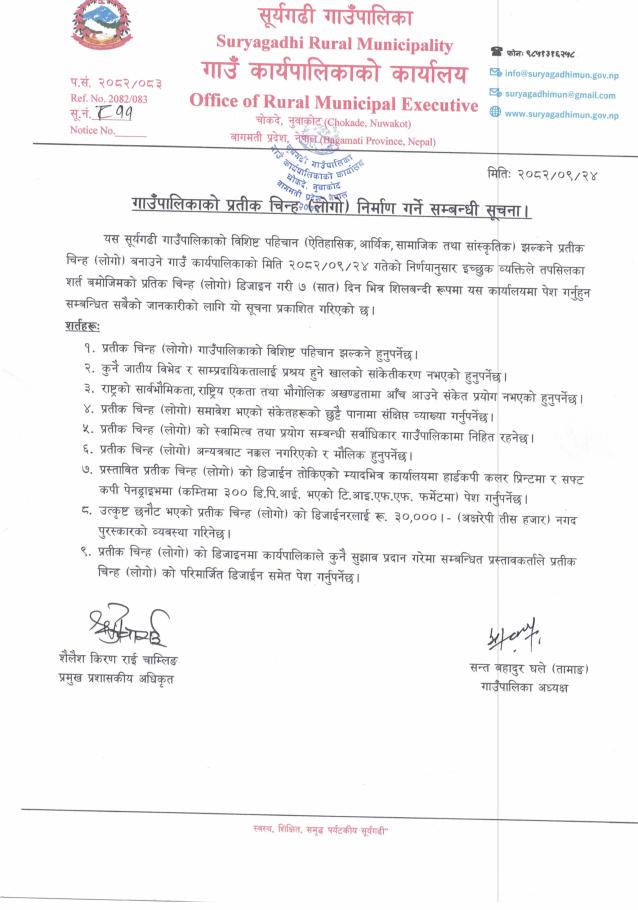 गाउँपालिकाको प्रतिक चिन्ह (लोगो) निर्माण गर्ने समबन्धी सूचना!