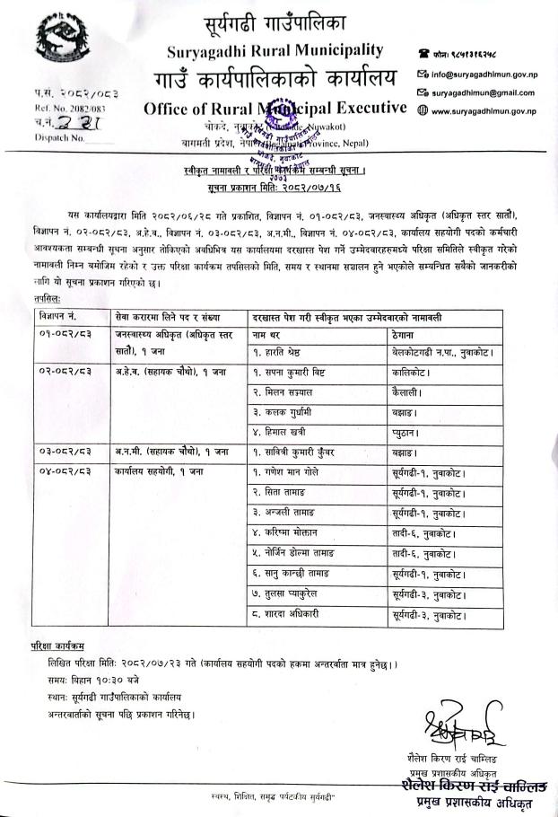 परिक्षा कार्यक्रम सम्बन्धी सूचना!!!