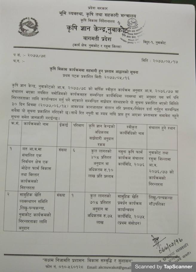 कृषि विकास कार्यक्रममा सहभागी हुन प्रस्ताव आह्वानको सूचना