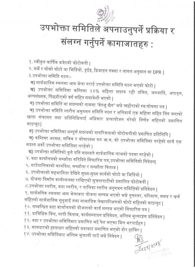 उपभोक्ता समितिले अपनाउनु पर्ने प्रक्रिया र संलग्न गर्नुपर्ने कागजातहरु ।