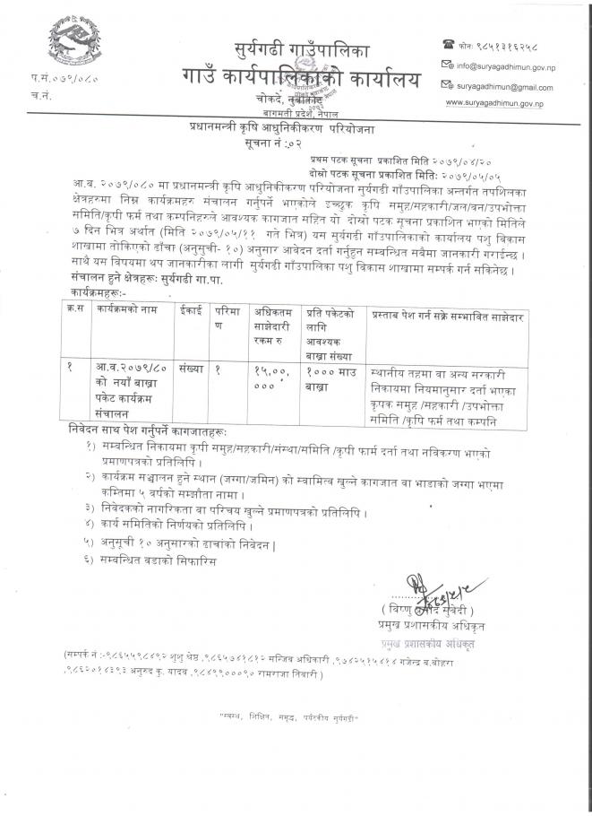 आ.व. २०७९/०८० को नयाँ बाख्रा पकेट कार्यक्रम सञ्चालन सम्बन्धी दोस्रो पटक प्रकाशित सूचना।।।