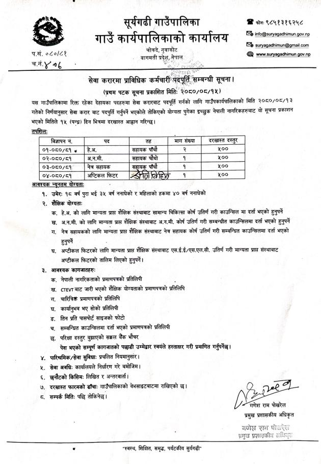 सेवा करारमा प्राविधिक कर्मचारी पदपूर्ति सम्बन्धी सूचना।